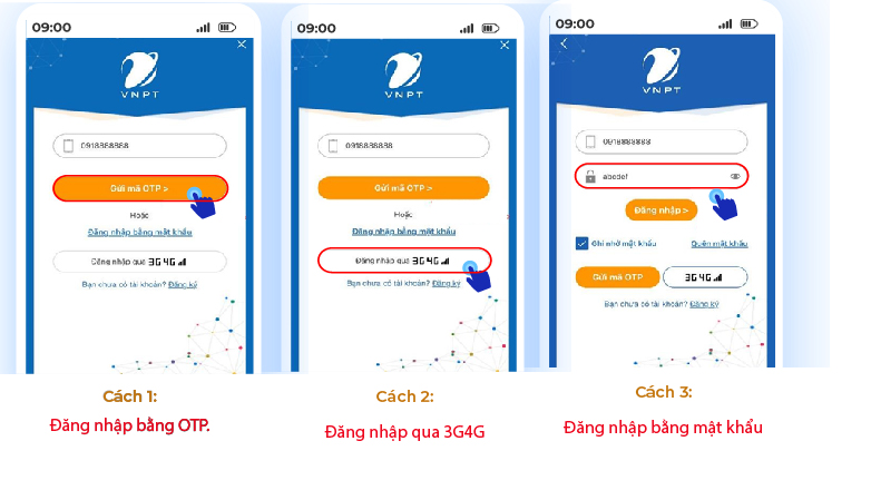 Sau khi đăng ký tài khoản thành công, bạn có thể đăng nhập ứng dụng My VNPT theo 3 cách: