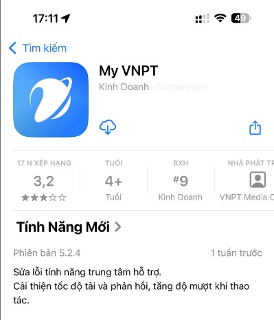 - Đối với điện thoại IOS (iPhone): Truy cập App Store trên thiết bị, tại thanh tìm kiếm nhập tên ứng dụng My VNPT sau đó chọn Tải (khi đã tìm thấy ứng dụng).